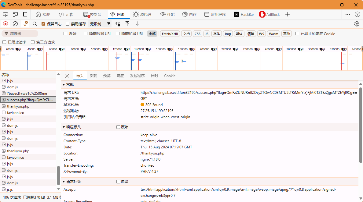 对/wireshark/flag.php文件的访问,返回的内容为}67bf613763ca-50b3-4437-7a3a-b683fe51{FTCesaB,估计是倒转了,所以我们直接转回来就行了
