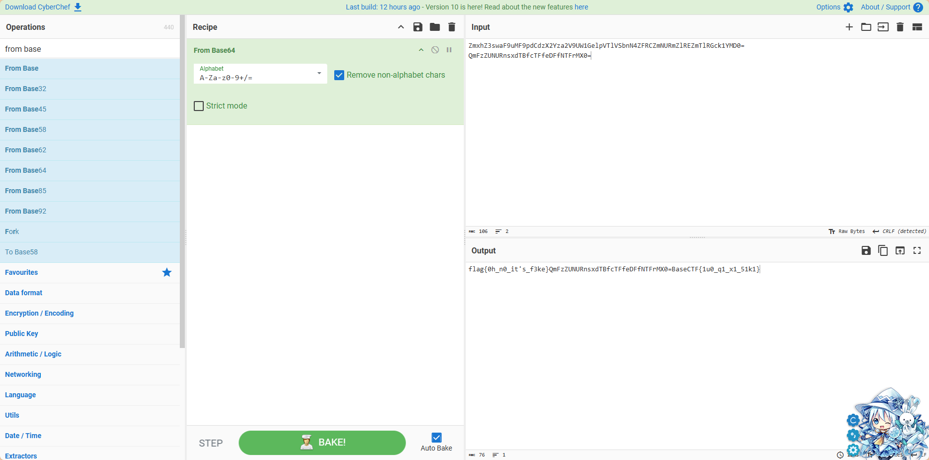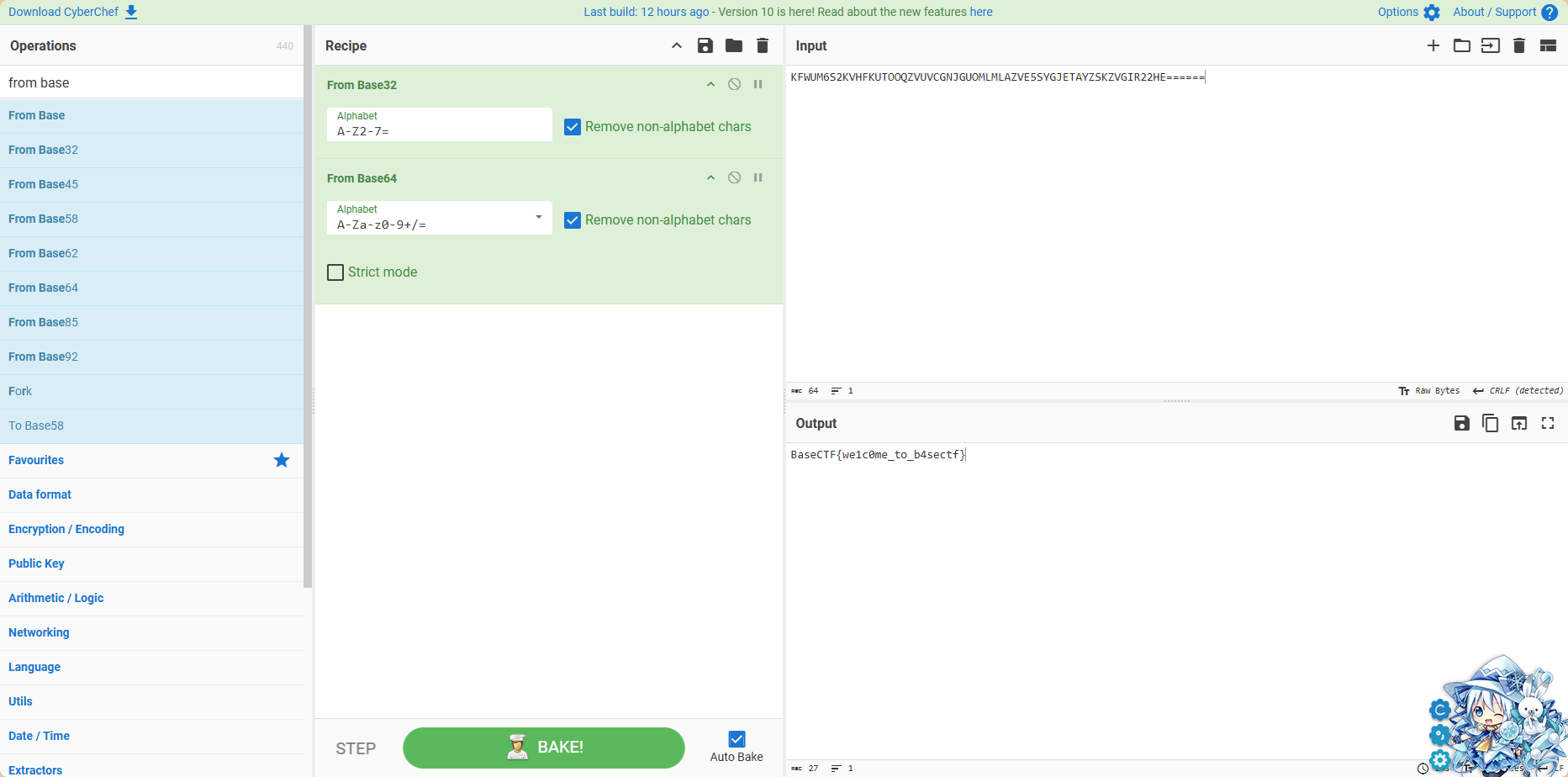 五个等号,base32,解码一下发现没出来,再来一次32发现不对,那来一次64,就出来了