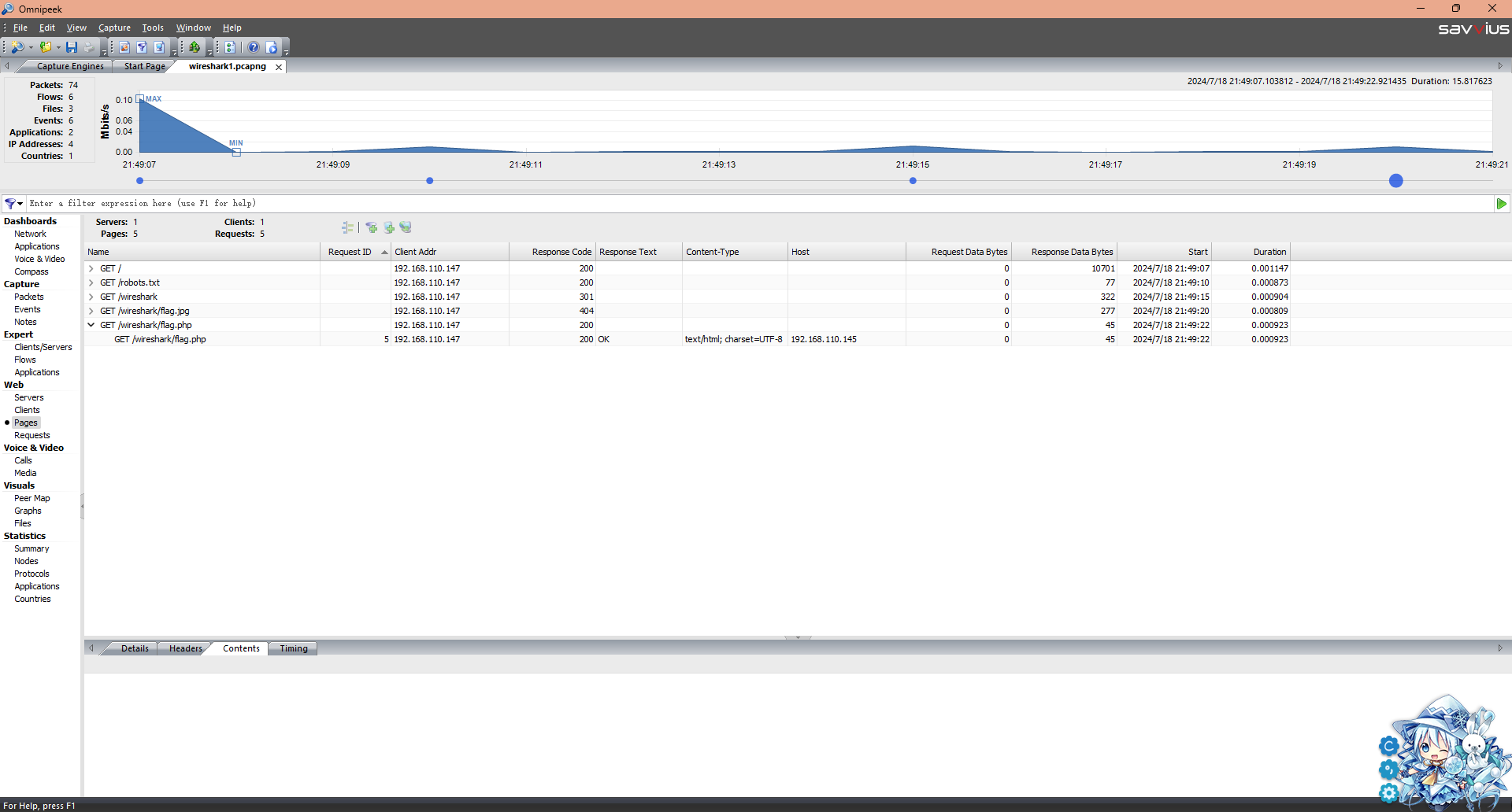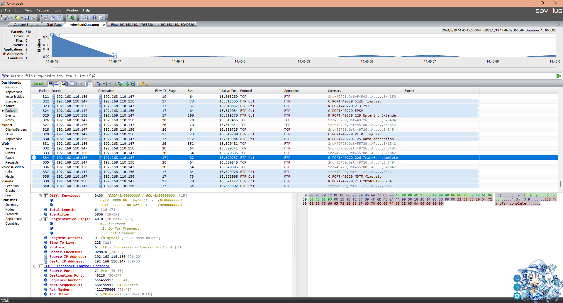 附件下载下来是个.pcapng文件,也就是wireshark的抓包文件,我们把它打开(我用的Omnipeek)