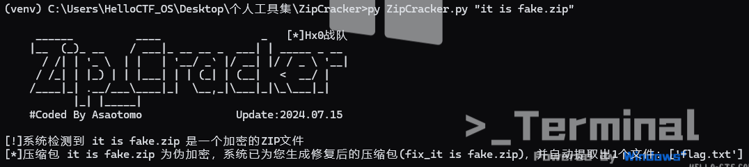 看似已经没有提示了,所以我想到的是伪加密,我尝试使用ZipCracker来自动解除伪加密