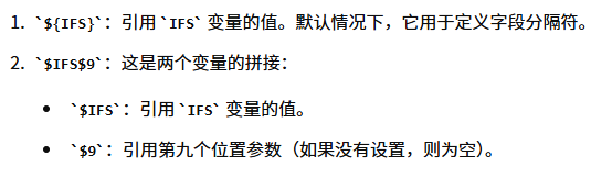 // execute the commandsystem($cmd);这里就要涉及到RCE的空格过滤绕过了,我们用到${IFS}来充当空格,因为这个变量在Linux系统里面默认指向空格(可参考下图GPT的解释)