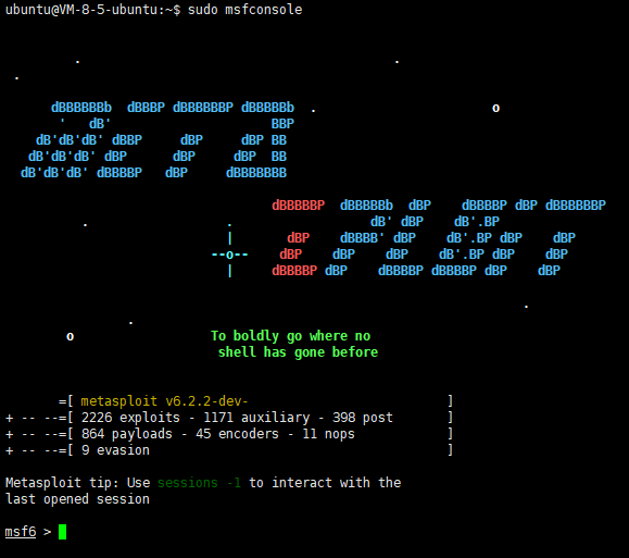 sudo chmod +x msfsudo ./msf然后就会开始安装,安装完成后输入msfconsole看看能不能正常打开,如果可以就是安装成功了
